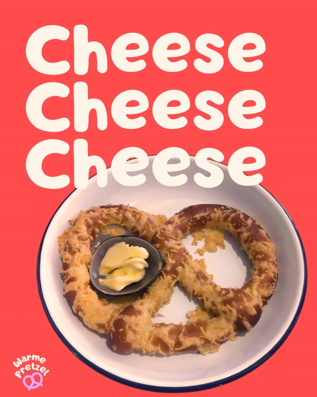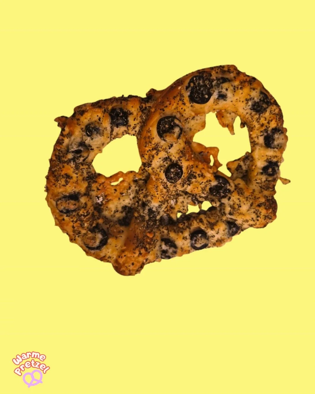 Classic large salty pretzel with diffeent savory toppings, from cheese, sea salt, healthy seeds & more…